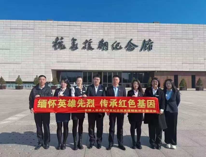 在中国人民志愿军抗美援朝出国作战 75 周年纪念日来临之际,丹东中支为深入学习贯彻党的二十大精神,进一步激发党员干部的爱国热情,传承红色基因,在新时代新征程中践行初心使命,2025 年 10 月 23 日,丹东中支总经理杨斌带领全体党员及入党积极分子登上英华山,走进抗美援朝纪念馆,在 2 万余件文物构建的历史长卷中,开展 “缅怀英雄先烈,传承红色基因” 主题党日活动,在历史文物与英雄事迹中感悟初心使命,汲取奋进力量,让英雄精神成为金融服务的精神密码。这座全国唯一全面反映抗美援朝战争的专题纪念馆,以“抗美援朝 保家卫国”为核心主题,藏有2万余件文物与3万余份资料,2020年改扩建后更借助声光电等技术打造沉浸式体验场景,让红色历史可感可触 。